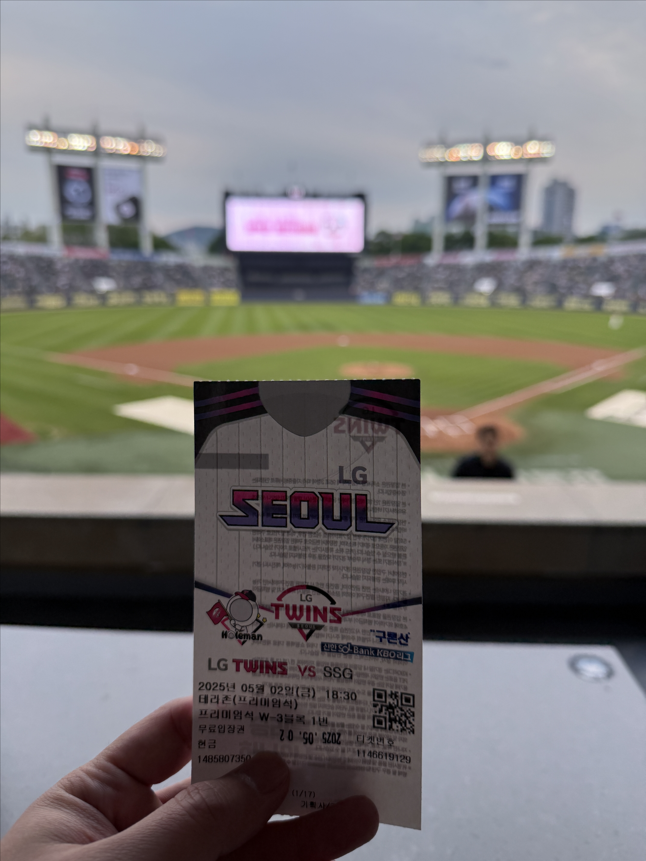 | [야구] LG vs SSG(랜더스필드 피코크테이블석 11블록 B열 6~7번) (1) | 2025.05.26 |