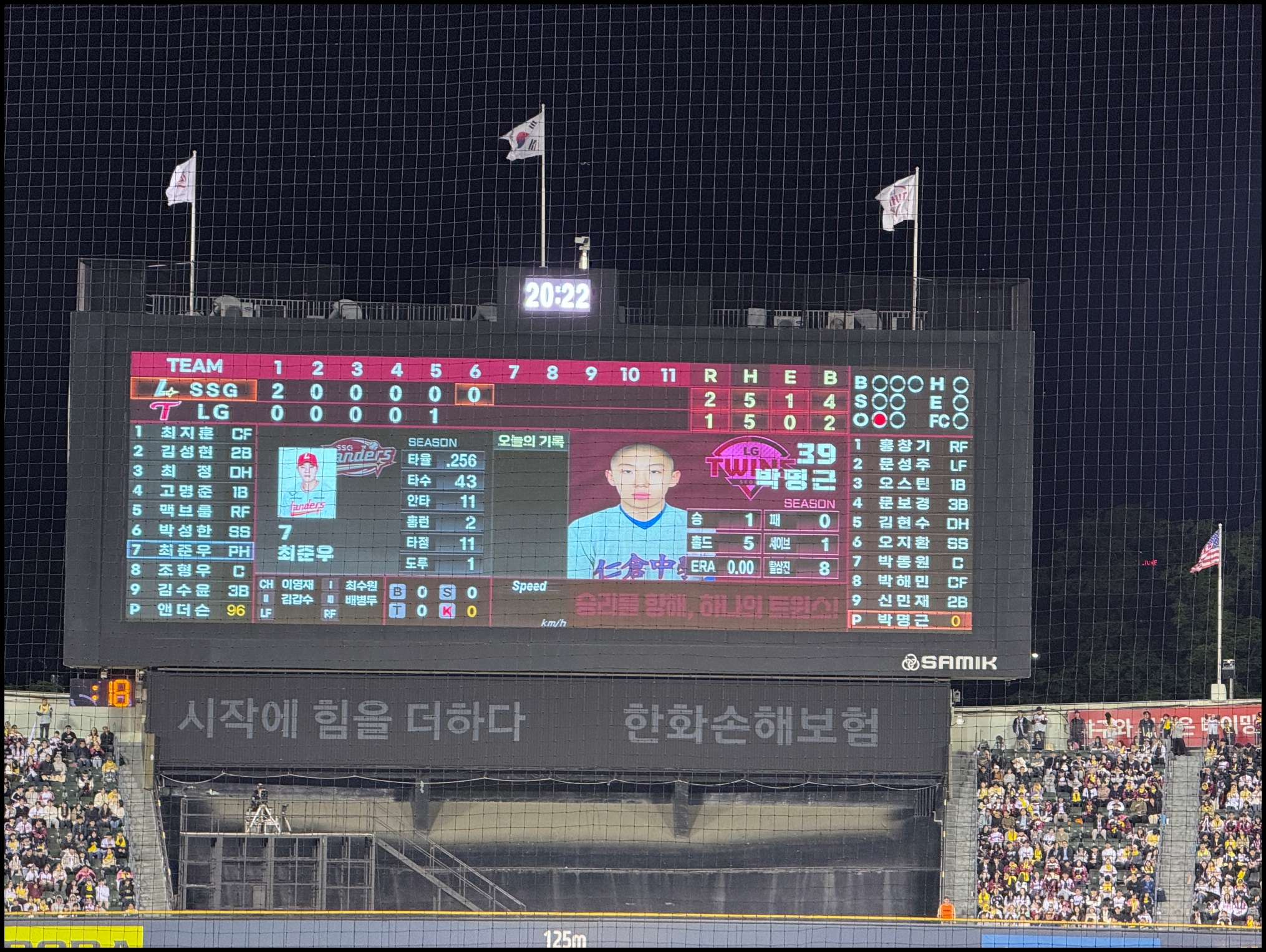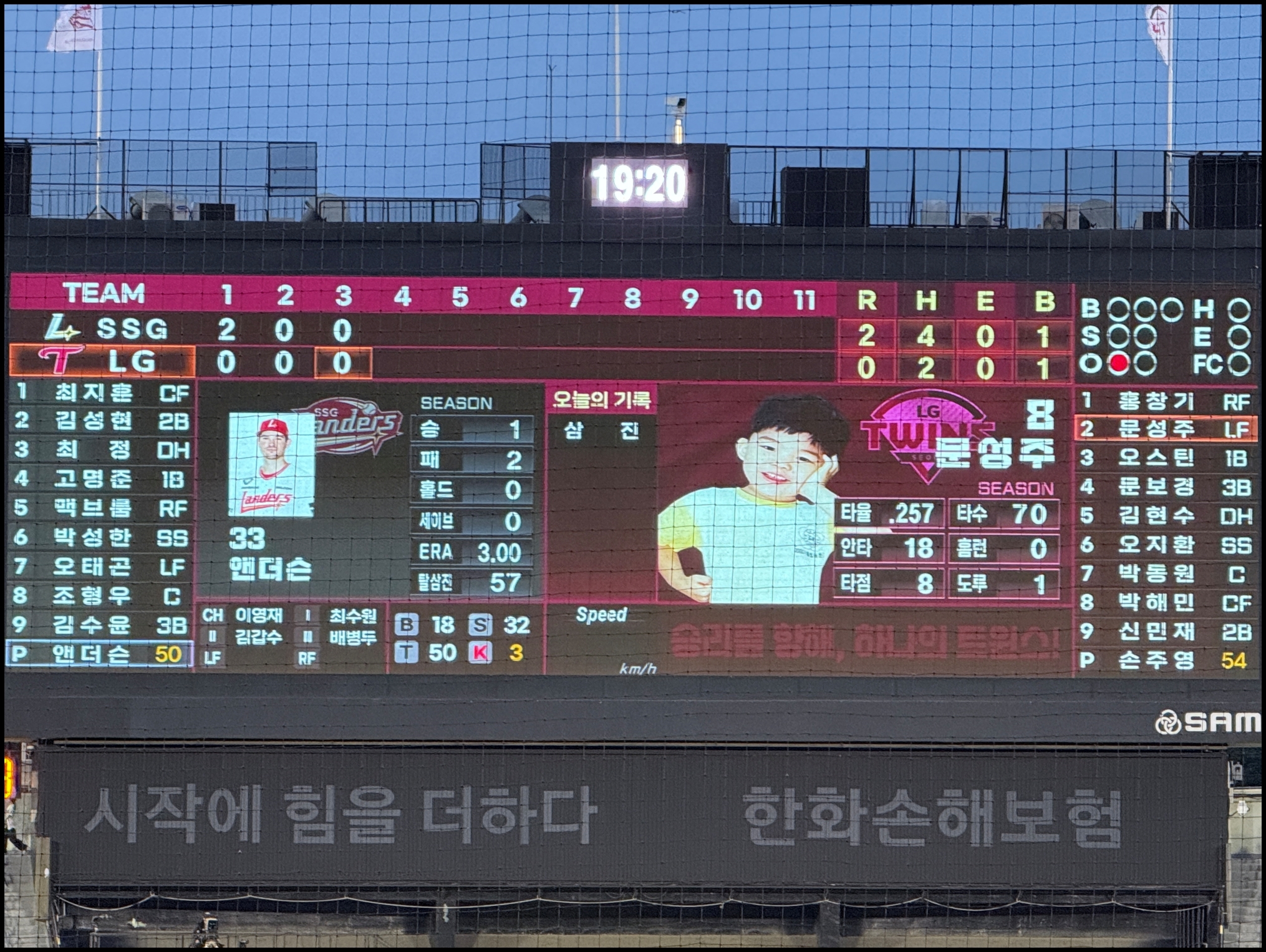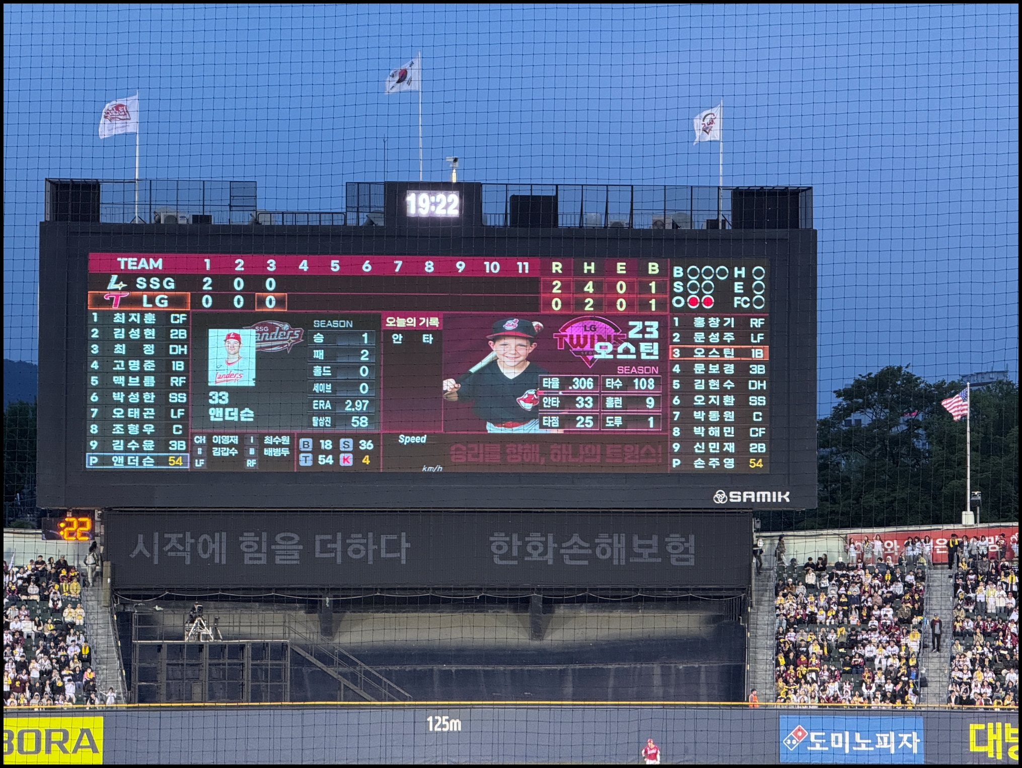 이와는 별개로 어린이날 주간이어서 전광판에 트윈스 선수들 어린시절 사진을 띄워주는건 나름 재미가 있어서 다 하나씩 찍어 봤습니다. 야수 타순, 투수 교체 순으로 정리해봤습니다.