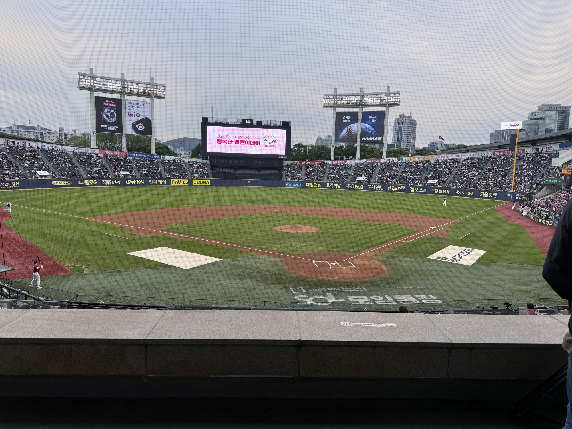 시야는 대충 요렇습니다. 지금까지 잠실구장에서 가봤던 자리 중에 가장 쾌적하게 관람할 수 있었던 자리이긴 했습니다.
